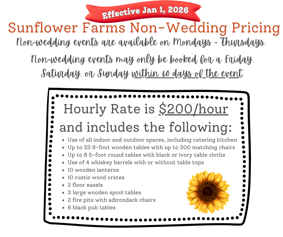 If you are searching for a venue to host your special event, look no further!  Sunflower Farms is the perfect venue for your prom, baby shower, bridal shower, celebration of life, anniversary party, holiday party, sorority/fraternity event, reunion, corporate meeting, or garden party!  Email us today for a tour at SunflowerFarmsEvents@gmail.com .